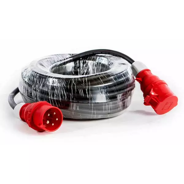16A voimavirtajatkojohto työmaakäyttöön. Valmistettu Suomessa H07RN-F kumikaapelista laadukkailla päillä.