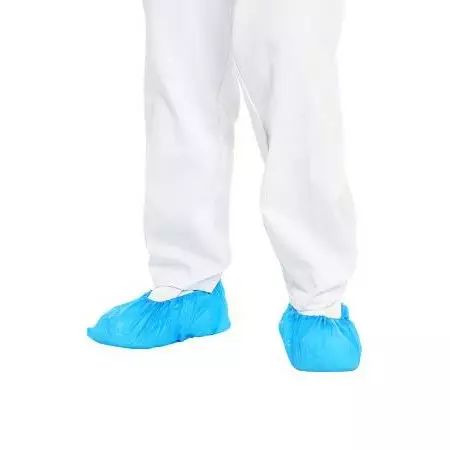 Sininen kertakäyttöinen polyeteenisuojus kengille.