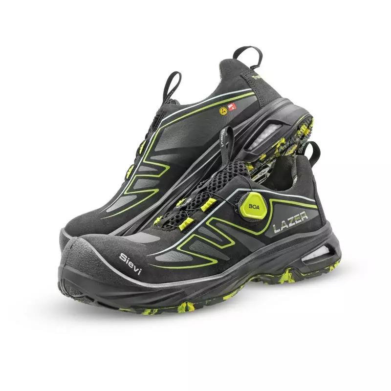 Lazer Roller+ turvajalkineessa on aukollinen kantarakenne. FlexEnergy®-joustoelementti näkyy jalkineen kannassa olevista aukoista, jotka mahdollistavat elementille suuremman liikkuvuuden lisäten näin jalkineen edistyksellistä joustavuutta. BOA® Fit System -kiinnitysmekanismin avulla jalkineet ovat nopea pukea ja riisua. Erinomaisen pidon varmistaa Sievi TractionPro®-kitkapohja.